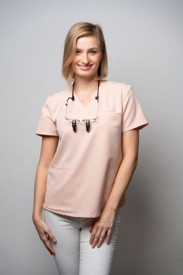 Ve své praxi využívá GBT protokol (Guided biofilm therapy) pro šetrné a profesionální ošetření, samozřejmostí jsou i lupové brýle pro detailní přehled v dutině ústní.